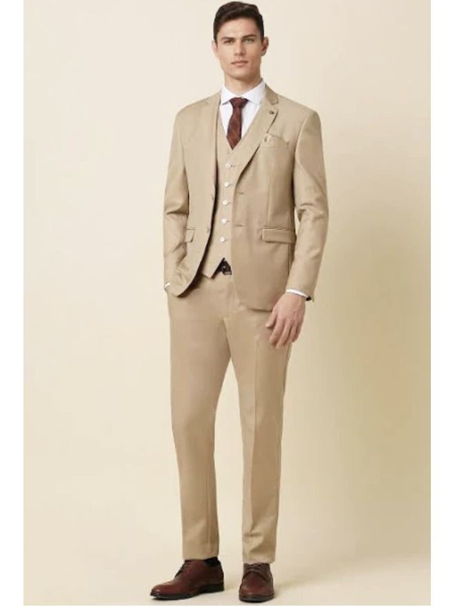 Brown formal suit with shirt, waistcoat, and trousers