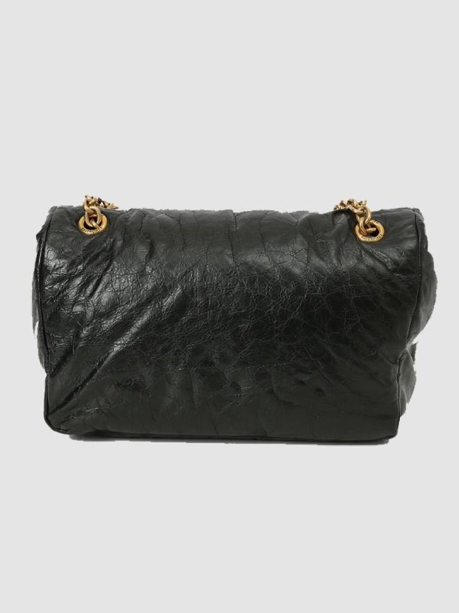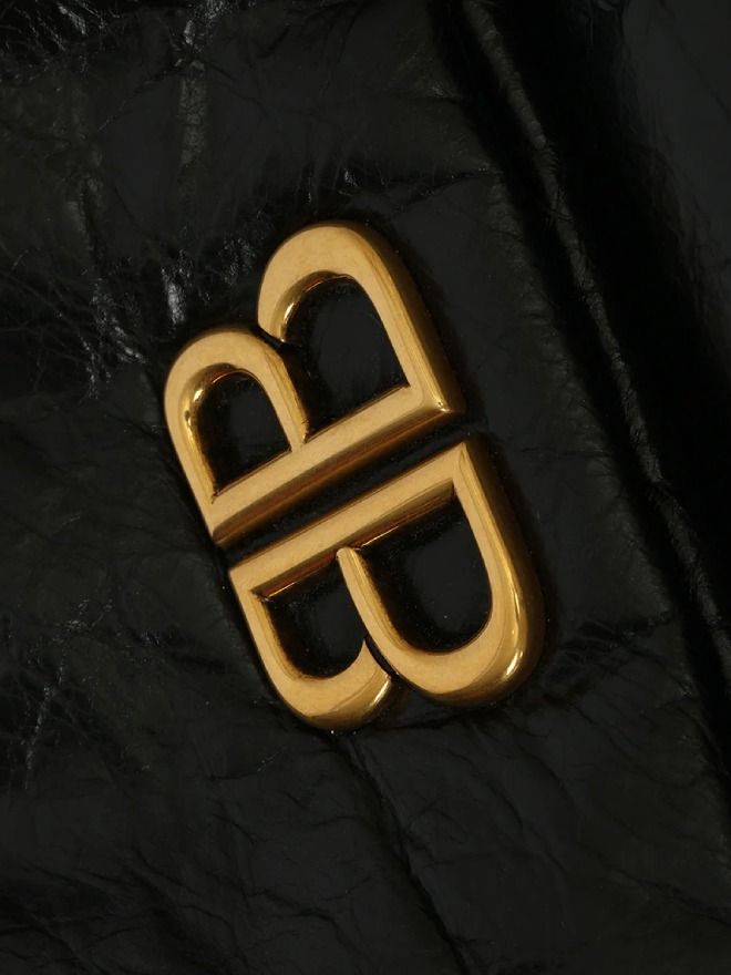 The bold yet minimalist design is enhanced by the iconic BB logo hardware on the front flap, adding a signature Balenciaga touch. A polished chain strap provides versatile wear — carry it as a chic shoulder bag or a stylish crossbody.