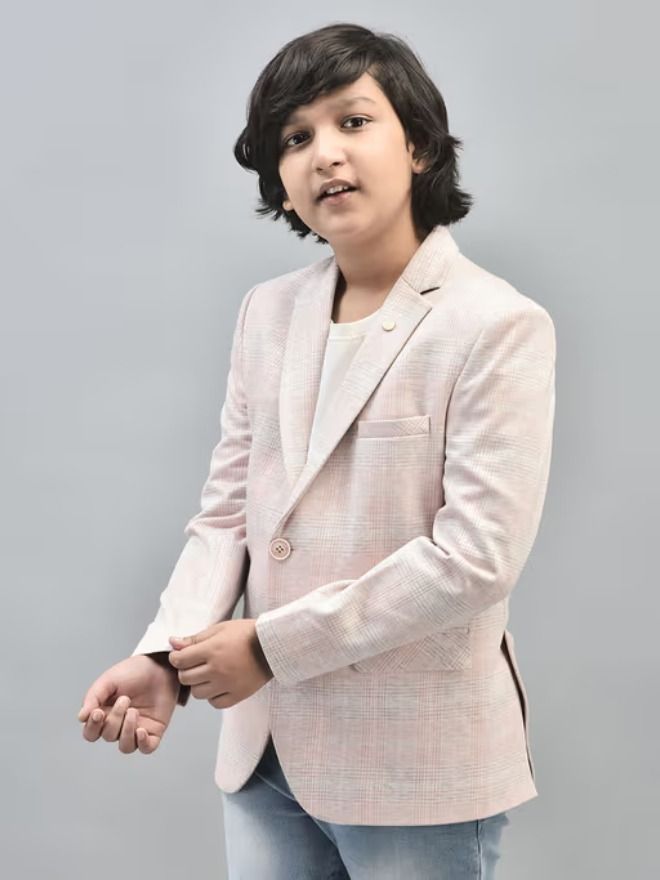 Revamp your little one's wardrobe with this peach blazer from CRIMSOUNE CLUB. Crafted from blended fabric, it is finished with full sleeves and a notched lapel.