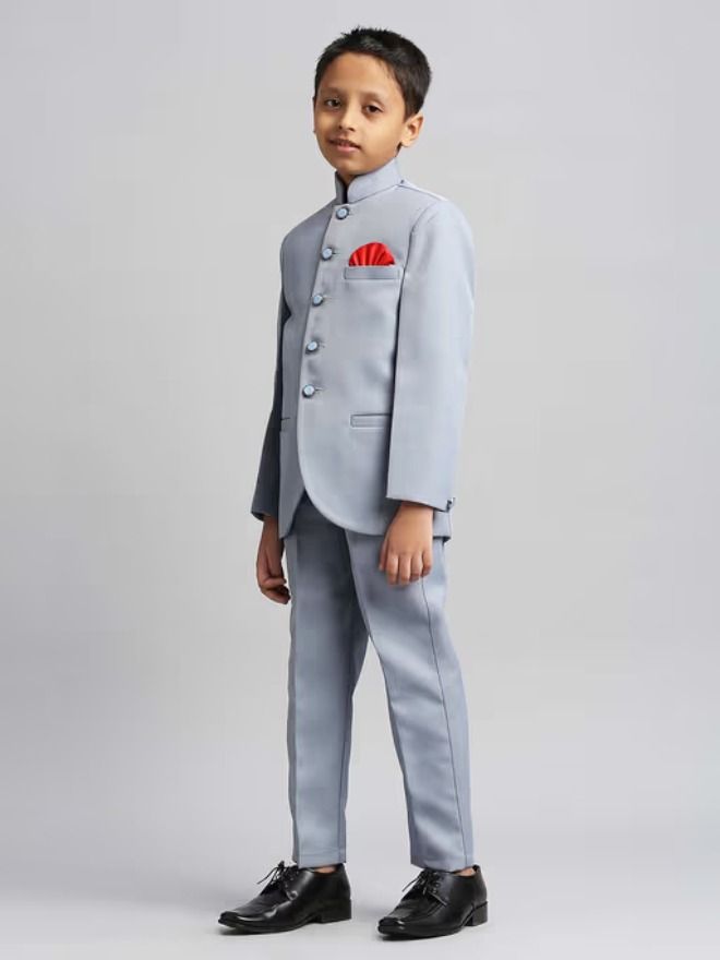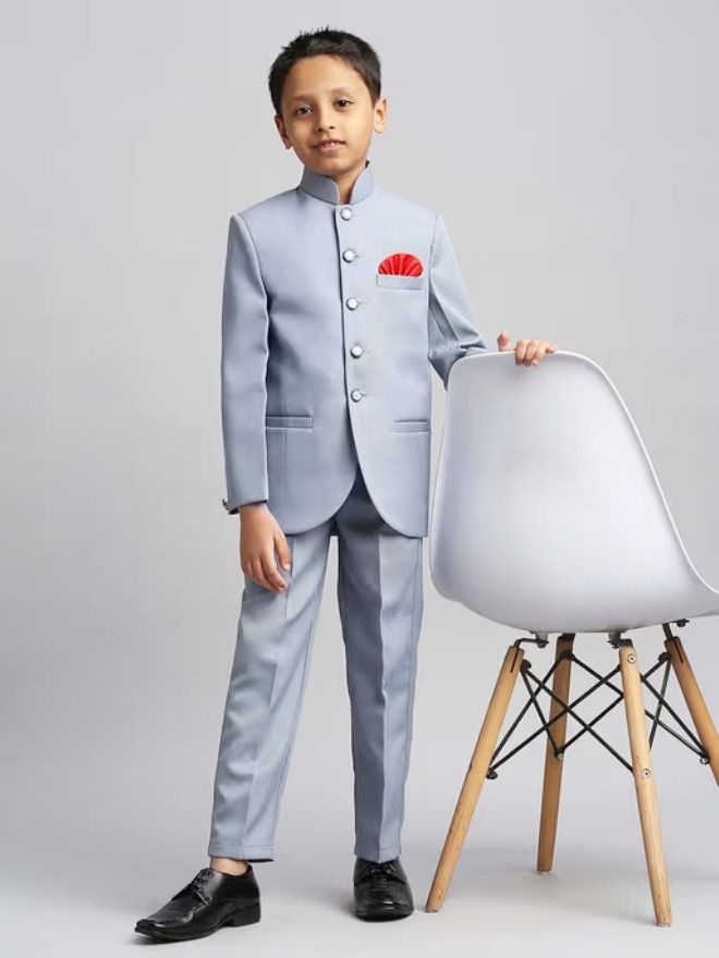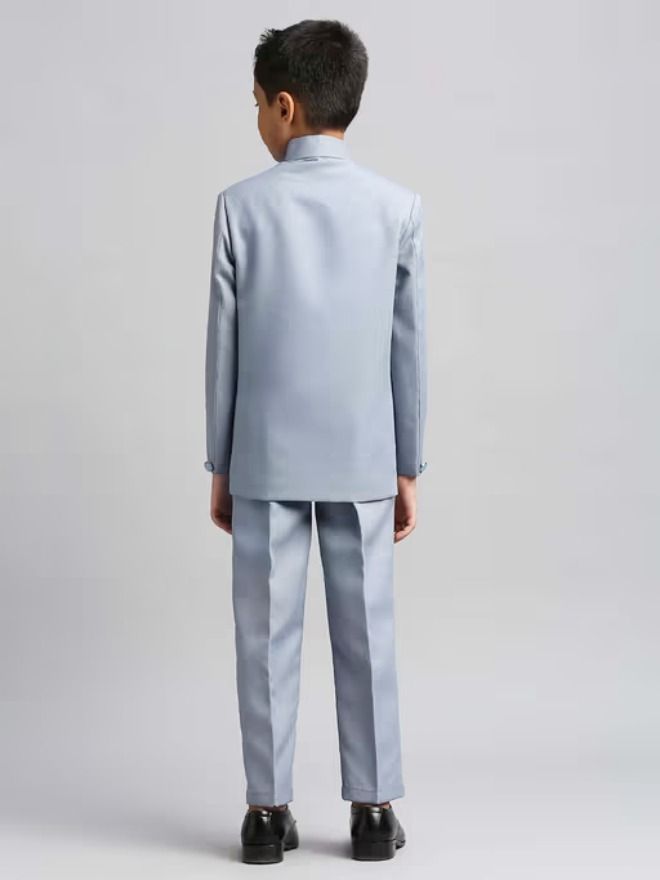 Let your young gentleman make a graceful ethnic statement with this elegant 2-piece Sky Blue Jodhpuri Suit Set.