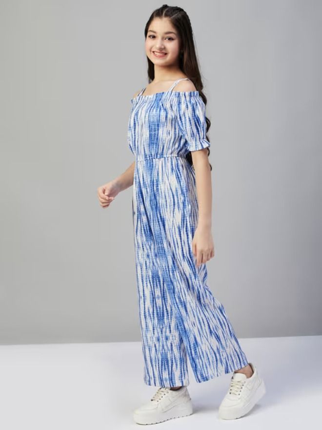 Add a touch of trendy flair to her wardrobe with this beautiful blue tie-dye printed ankle-length jumpsuit.