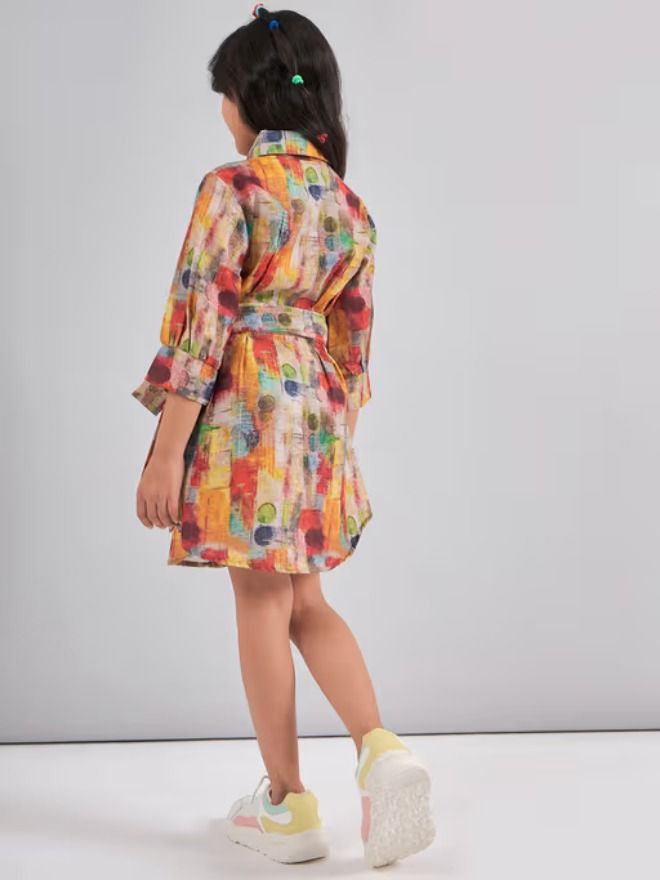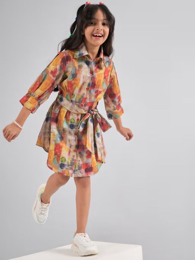Bright and playful, this beautiful multicolor floral-printed A-line dress is perfect for casual days full of fun.