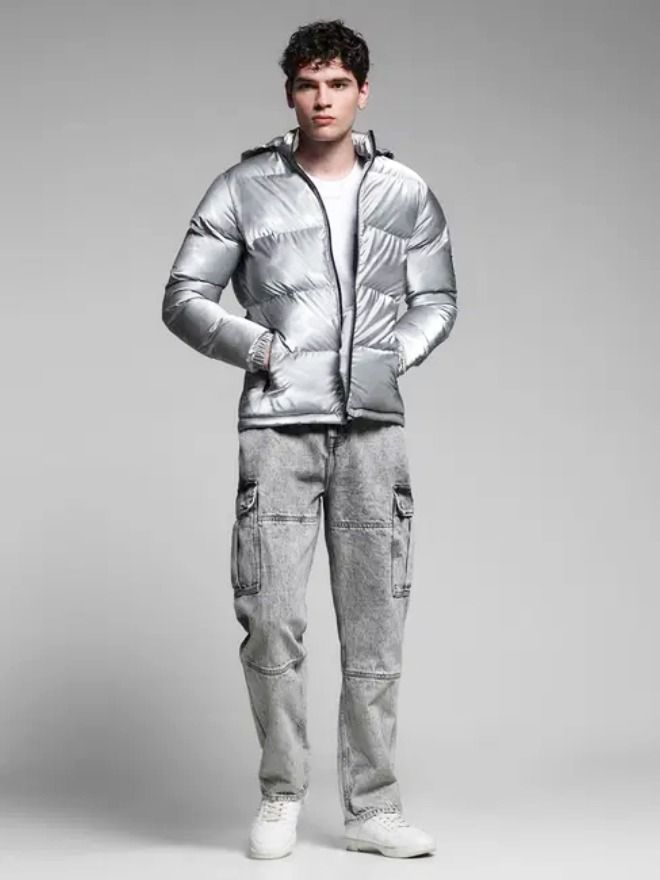 Stay warm and stylish with this Grey Foil Print Puffer Jacket! It’s the perfect blend of function and fashion, designed to keep you cozy without compromising on cool. The metallic foil print adds a bold twist to your winter wardrobe, making sure you stand out in the cold. Lightweight yet super snug, this jacket is your go-to for chilly days and nights. Layer it up or wear it solo—either way, you're bound to turn heads!