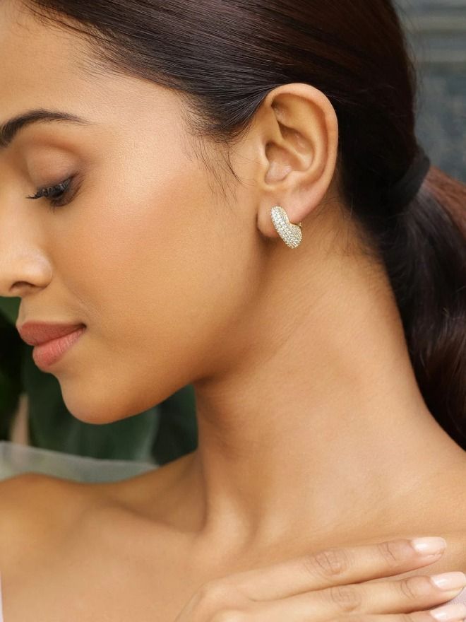 Earrings : Add a romantic touch to your jewelry collection with these 18K gold-plated heart-shaped hoop earrings. Adorned with shimmering cubic zirconia, they bring elegance and charm to every outfit.