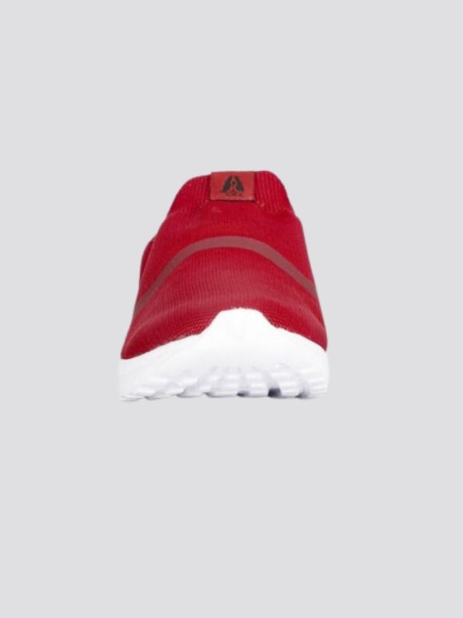 Elevate your casual look with these round toe slip-on sneakers from hush puppies. crafted from lightweight flyknit material and featuring an eva/phylon sole, these shoes offer both style and comfort for all-day wear. the maroon red hue exudes sophistication, while the stripe on the front adds a touch of contrast. whether you're running errands or meeting friends, step out in style with these versatile slip-on sneakers.