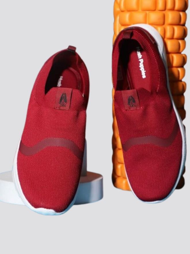 Hush puppies maroon round toe slip-on sneaker shoes for men