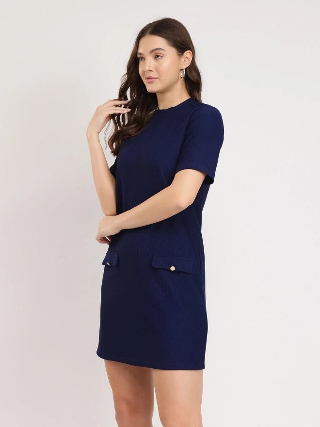 Knitted Shift Dress - Navy Blue