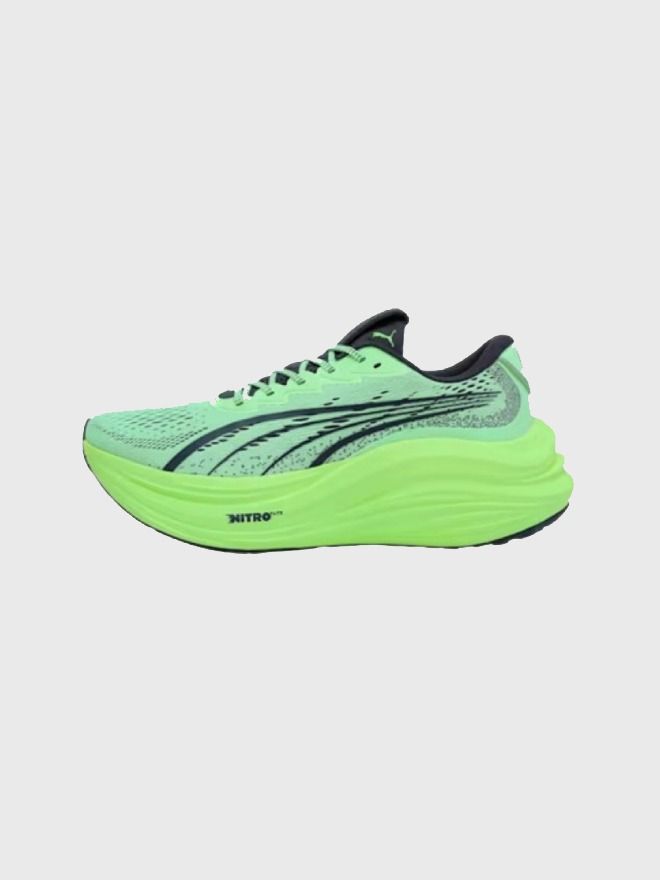 Experience an exhilarating bounce like never before with the MagMax NITRO™. Boasting an impressive amount of cutting-edge NITROFOAM™ technology, these shoes will effortlessly propel you from one mile to the next, filling your stride with excitement and ease. Around the foot you'll find a comfortable mesh, deluxe knitted tongue and cushioned heel. PUMAGRIP protects the precious NITROFOAM™ and provides top-notch traction keeping you steady on your feet.