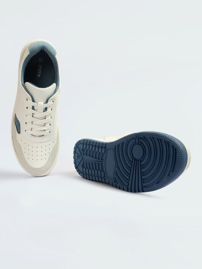 Up your shoe game with this pair of sneakers. It features a colour block upper with overlays, round toe, and lace-up closure. The padded collar, cushioned insole, and treaded outsole combine comfort and support.