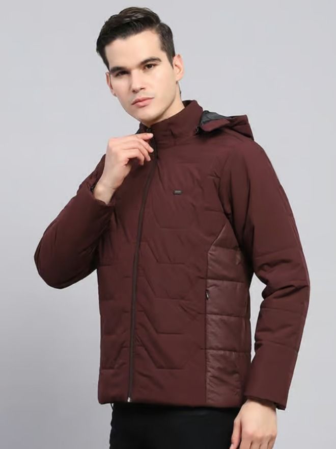 Confer a contemporary edge to your attire with this wine hooded regular fit hooded jacket from Monte Carlo. Tailored to sartorial perfection from premium quality fabric, it assures a soft and soothing touch against the skin. Exuding full sleeves, it is sure to fetch you compliments from all. The quilted pattern further speaks for itself.