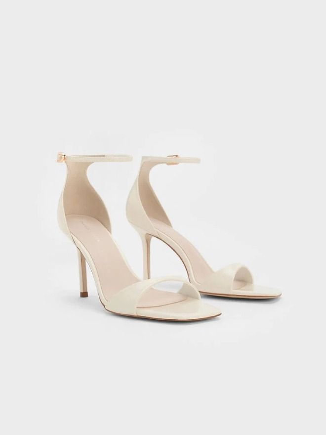 Step into refined elegance with these chalk white patent heeled sandals. Featuring a clean, minimalist design, this pair lets its glossy finish take center stage for a look that’s both modern and timeless. Set atop sleek 9cm stiletto heels, they instantly elevate any outfit—from office ensembles to evening wear. The adjustable ankle straps provide a secure and comfortable fit, making them a reliable choice for all-day style and confidence.