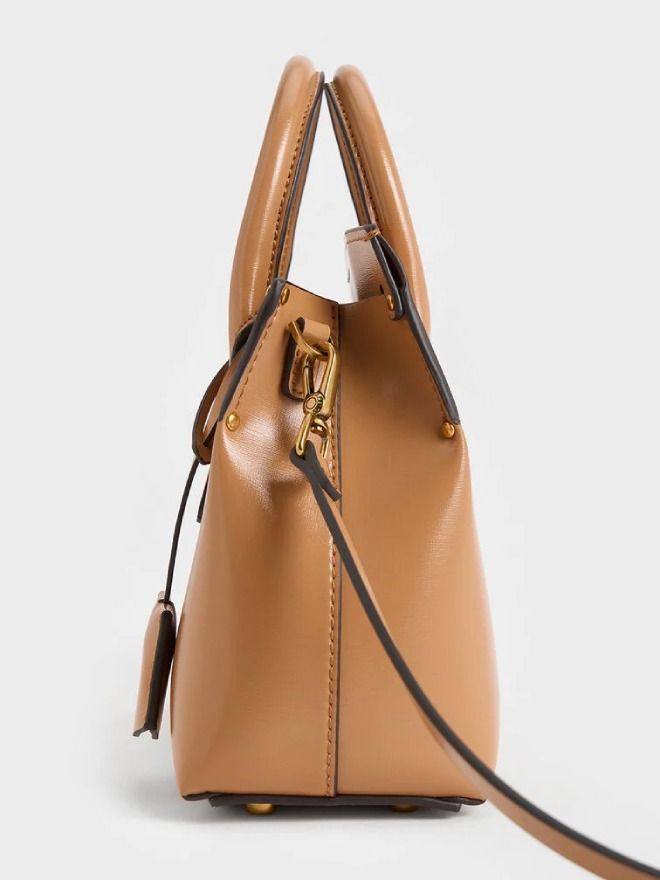 Elevate your work wardrobe with the Rene top handle bag, the perfect balance of minimalist design and refined elegance. The warm toffee finish adds a touch of richness to the structured silhouette, while subtle metallic hardware and a detachable bag tag enhance its sophisticated appeal. Whether you're toting it by the sleek top handles or carrying it as a shoulder bag with the adjustable strap, this versatile piece will complement any outfit with effortless grace. Ideal for the modern professional, the Rene bag is a timeless investment in both style and function.
