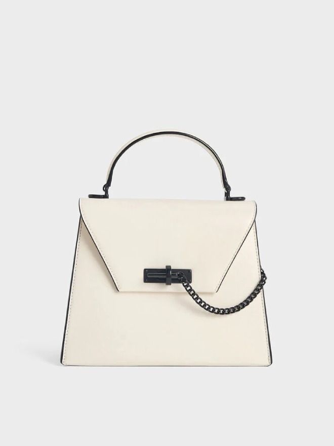 Add a distinctive touch to your wardrobe with the Samantha bag, where polished elegance meets a hint of edge. Featuring a sleek trapeze silhouette and minimalist design, this bag stands out with its thoughtful details, like subtle black piping and matte black hardware. The two-tone finish adds depth, ensuring your look remains visually striking while still versatile enough to pair with most outfits. Perfect for those who want to elevate their style with an eye-catching yet refined accessory.