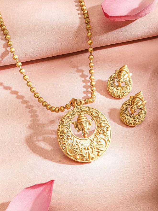 Adorned with intricate detailing and suspended from a delicate chain, this necklace set is a captivating tribute to spirituality and serves as a reminder of inner peace and harmony.