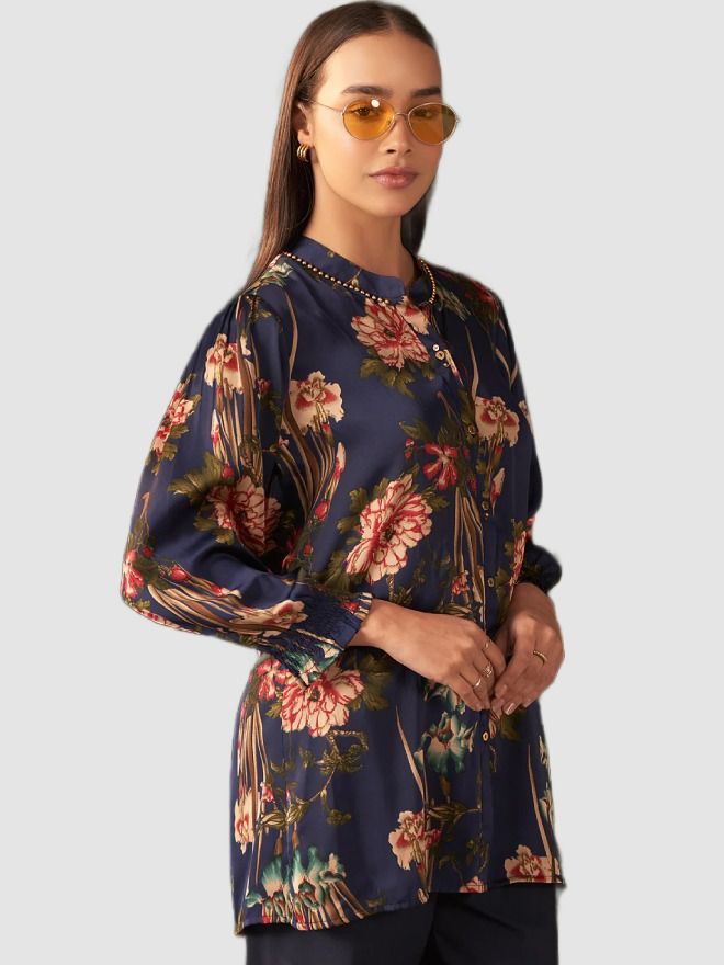 •Thoughtful details such as metallic bead embellishments on the placket and collar elevate the overall look, making it a standout piece.