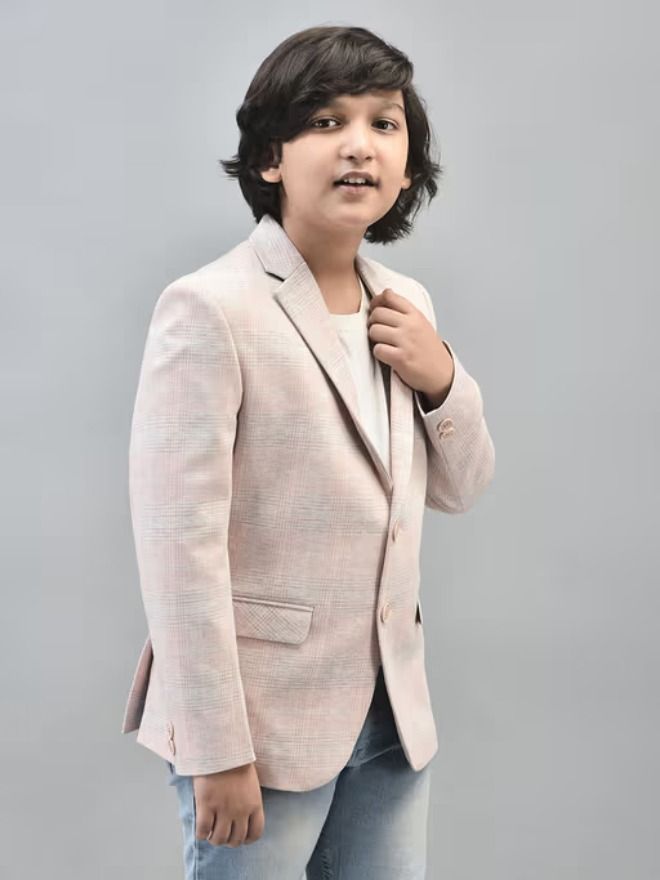 Revamp your little one's wardrobe with this peach blazer from CRIMSOUNE CLUB. Crafted from blended fabric, it is finished with full sleeves and a notched lapel.