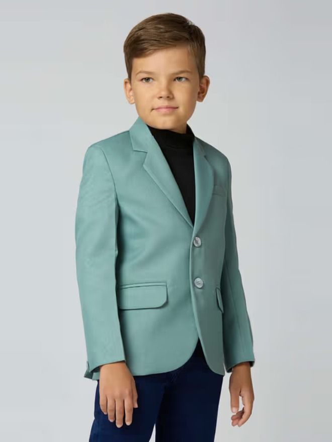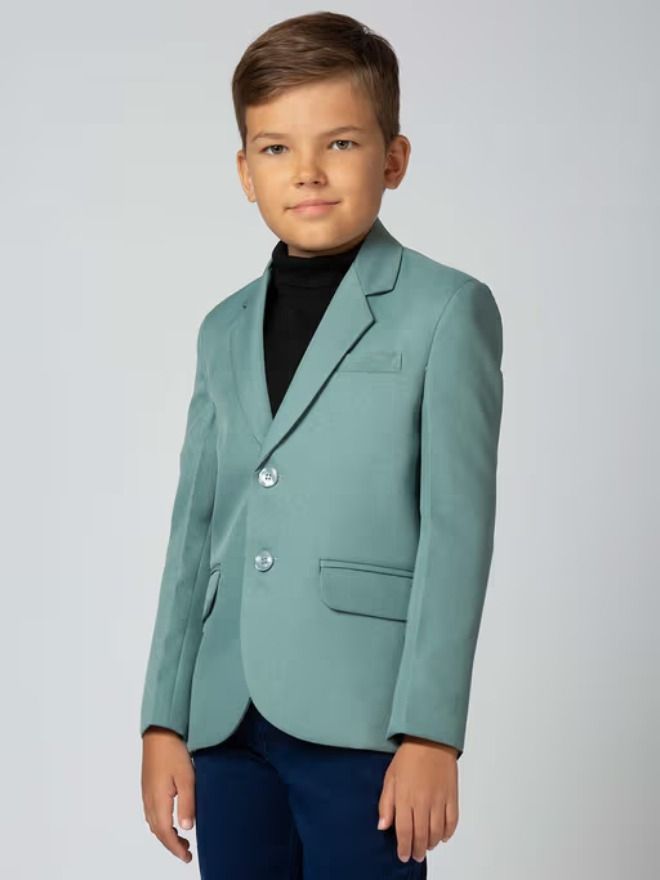 This Sea Green Solid Blazer Offers A Refreshing and Sophisticated Look for Any Formal Occasion. With Its Tailored Fit and Elegant Design, It’S Perfect for Weddings, Parties, or Special Events. The Soft Sea Green Color Adds A Serene Yet Stylish Touch, Making It An Ideal Choice for Young Gentlemen Who Want To Stand Out with Grace and Charm.