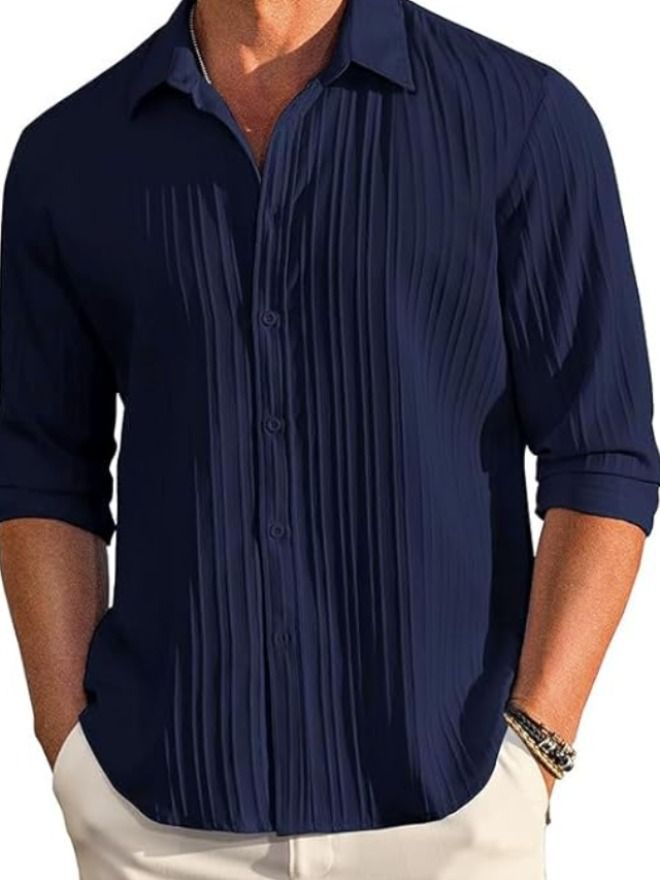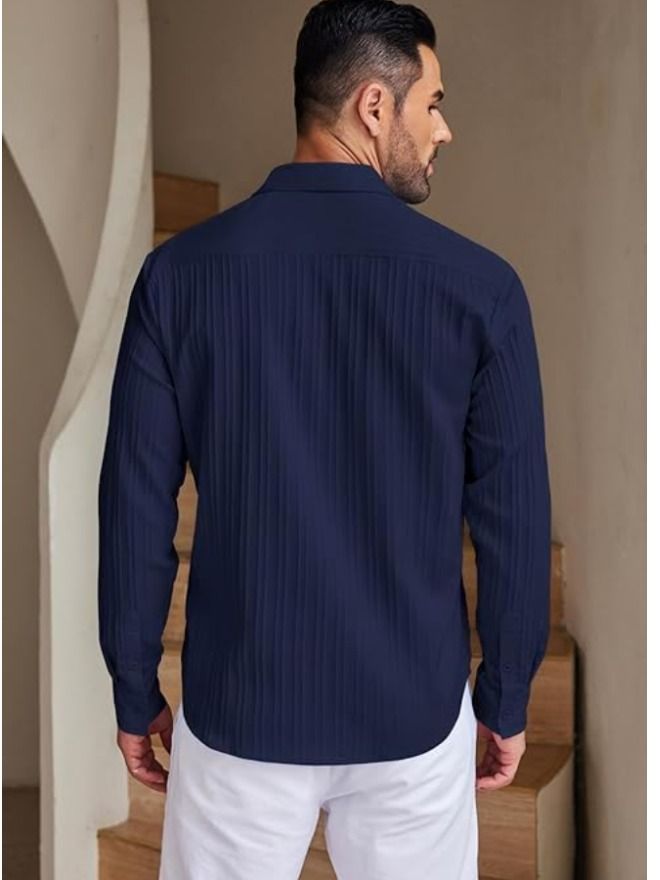 • 【Unique Design】Mens casual shirts feature long sleeve,spread collar, solid color,slight vertical ribbing,relaxed fit,simple and fashion