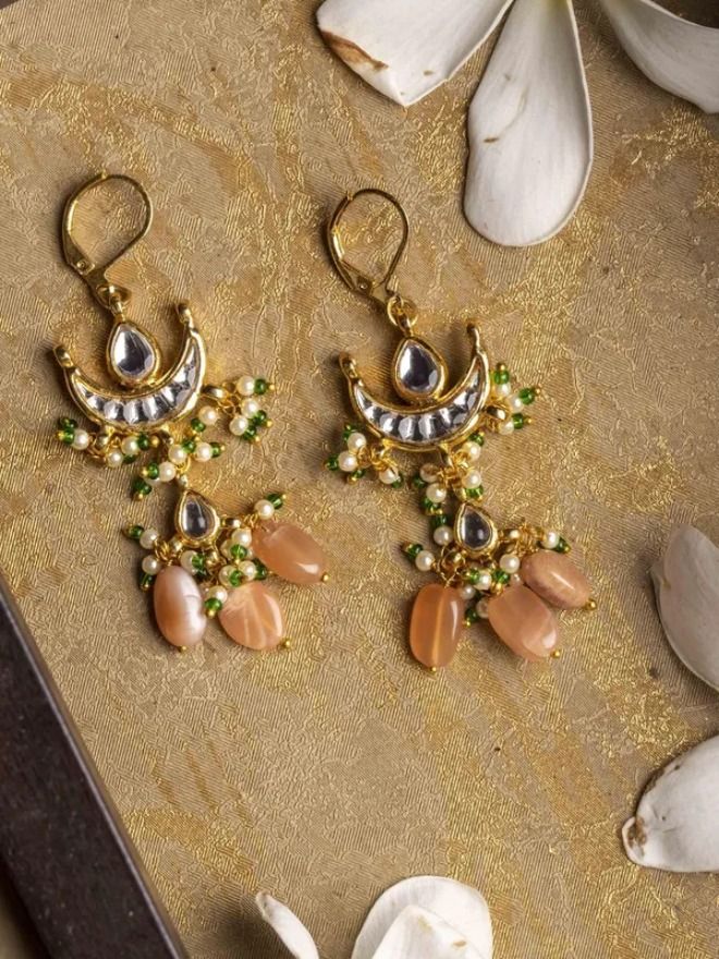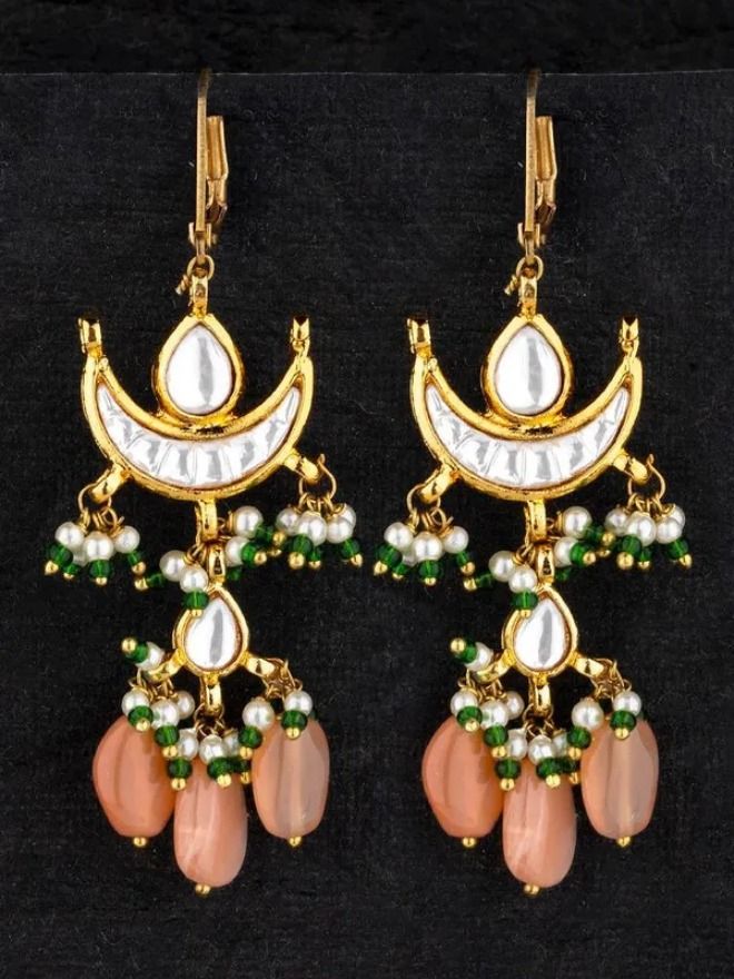Channel effortless grace with these Coral & Green Half Moon Earrings, a striking blend of vibrant hues and elegant design. Featuring a distinctive half-moon silhouette, these earrings are adorned with radiant coral and deep green stones, set against a warm gold-tone base. Whether you're dressing up for a festive gathering or adding a pop of color to a casual ethnic outfit, these earrings offer the perfect balance of tradition and trend.