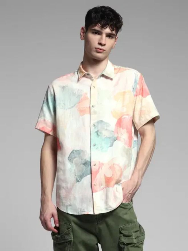 CORAL PRINTED COTTON SHIRT FOR MEN