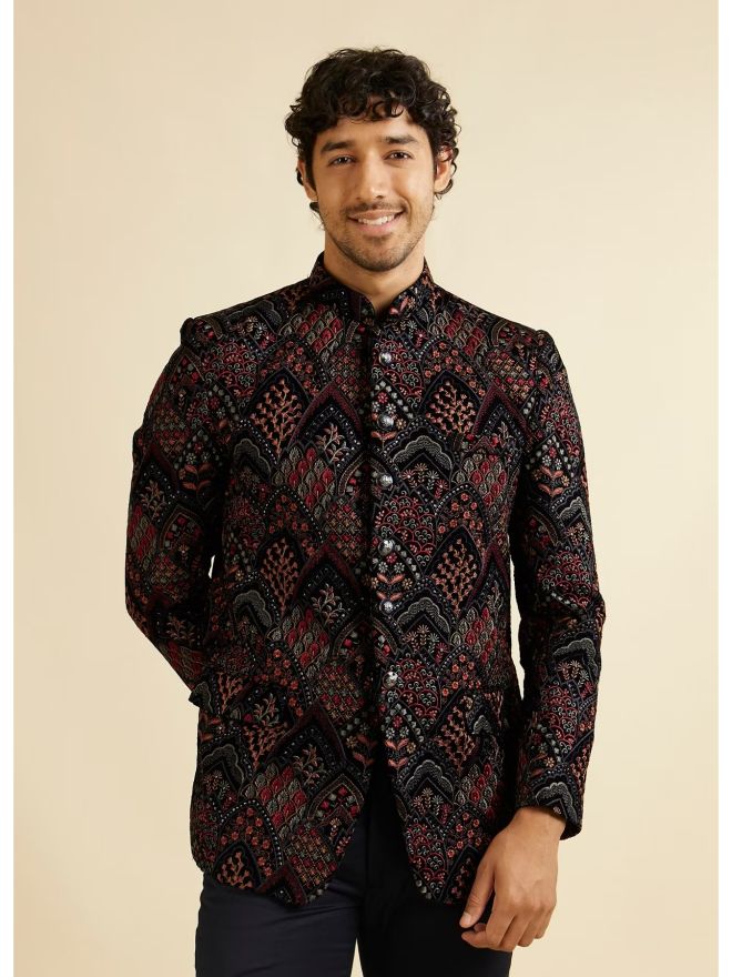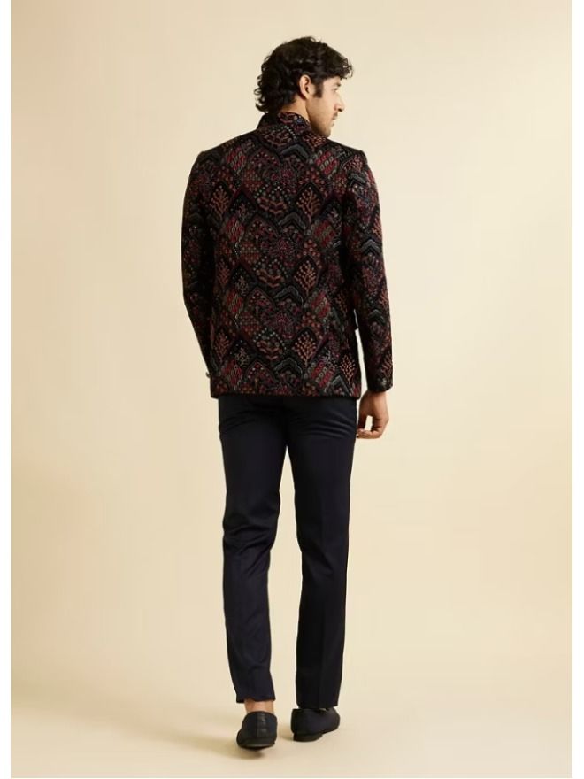 Elevate your formal attire with our dark blue jodhpuri set for men, featuring elegant fern motifs in a unique fish scale pattern. Crafted from premium fabric, this set combines traditional craftsmanship with contemporary design, making it ideal for weddings and special occasions. The rich dark blue hue and intricate detailing offer a sophisticated and regal look. Pair this Jodhpuri set with black dress shoes and a coordinating pocket square for a polished and distinguished ensemble.man
