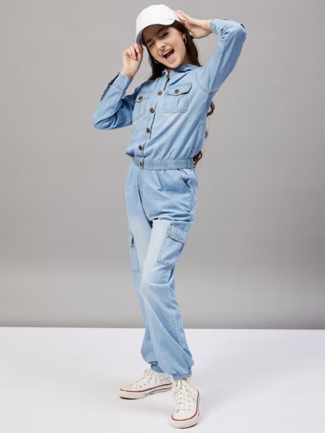 Keep it cool and stylish with this beautiful blue solid full-length girls' top and trousers set—perfect for casual wear and everyday fun.