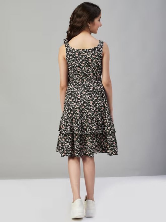 Let her step out in style with this beautiful black printed knee-length A-line dress—perfect for casual outings and everyday charm.