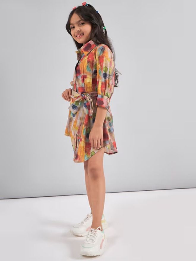 Bright and playful, this beautiful multicolor floral-printed A-line dress is perfect for casual days full of fun.