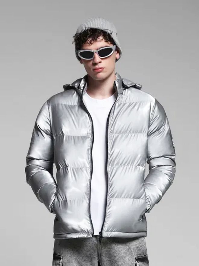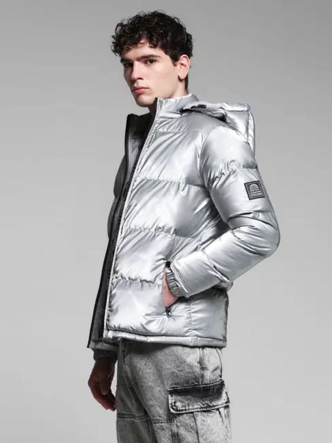 Stay warm and stylish with this Grey Foil Print Puffer Jacket! It’s the perfect blend of function and fashion, designed to keep you cozy without compromising on cool. The metallic foil print adds a bold twist to your winter wardrobe, making sure you stand out in the cold. Lightweight yet super snug, this jacket is your go-to for chilly days and nights. Layer it up or wear it solo—either way, you're bound to turn heads!