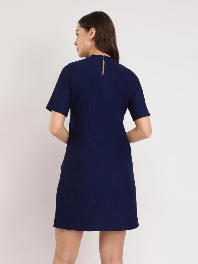 Knitted Shift Dress - Navy Blue