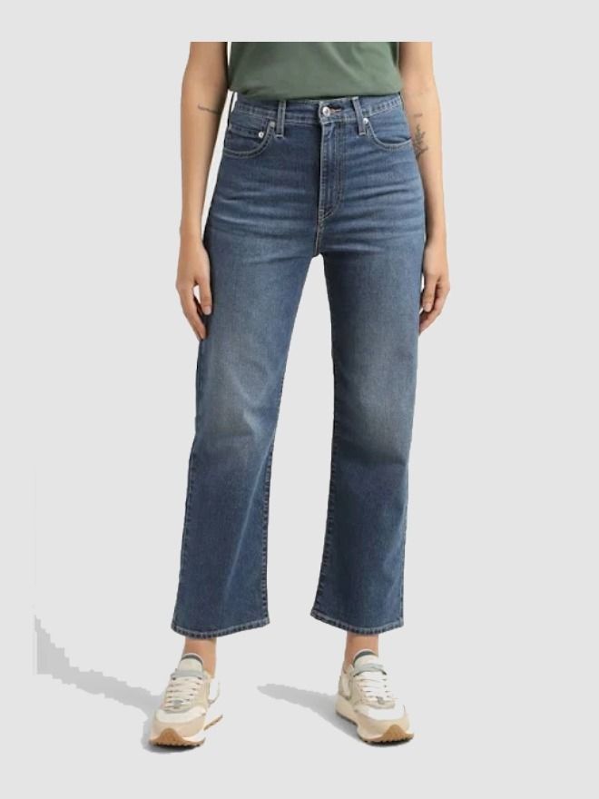 Upgrade your denim collection with these classic high-rise straight leg jeans, designed to offer timeless style and all-day comfort. Crafted from a premium cotton blend, these jeans feature a flattering high-rise waist and a straight silhouette that elongates the legs. The medium blue wash with subtle fading and whiskering adds a vintage-inspired touch, making them a versatile staple for any wardrobe.