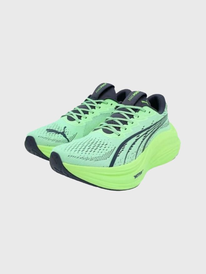 Experience an exhilarating bounce like never before with the MagMax NITRO™. Boasting an impressive amount of cutting-edge NITROFOAM™ technology, these shoes will effortlessly propel you from one mile to the next, filling your stride with excitement and ease. Around the foot you'll find a comfortable mesh, deluxe knitted tongue and cushioned heel. PUMAGRIP protects the precious NITROFOAM™ and provides top-notch traction keeping you steady on your feet.