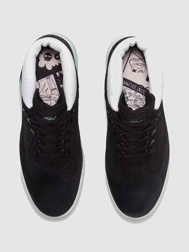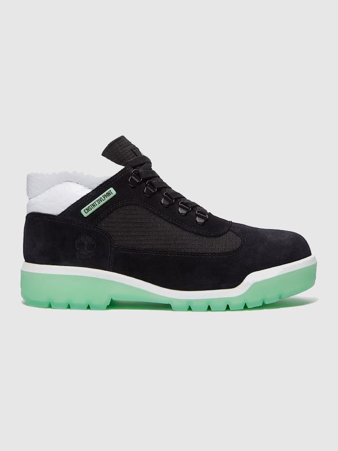 Our project with CNSTNT:DVLPMNT celebrates the essential elements that encourage creative expression – the artists AND their mentors coming together. This Timberland® Field Boot was designed by the CNSTNT: DVLPMNT team of mentors that inspire and encourage the next generation of designers. Featuring waterproof Premium Timberland® leather and TimberDry™ technology made from at least 50% recycled plastic, the distinctive black upper and mint outsole combine in tribute to the "glow” of creativity inside young talent just waiting to step forward. As part of this project, Timberland will donate $150,000 to advance CNSTNT.DVLPMNT’s efforts to educate young designers on future career opportunities.