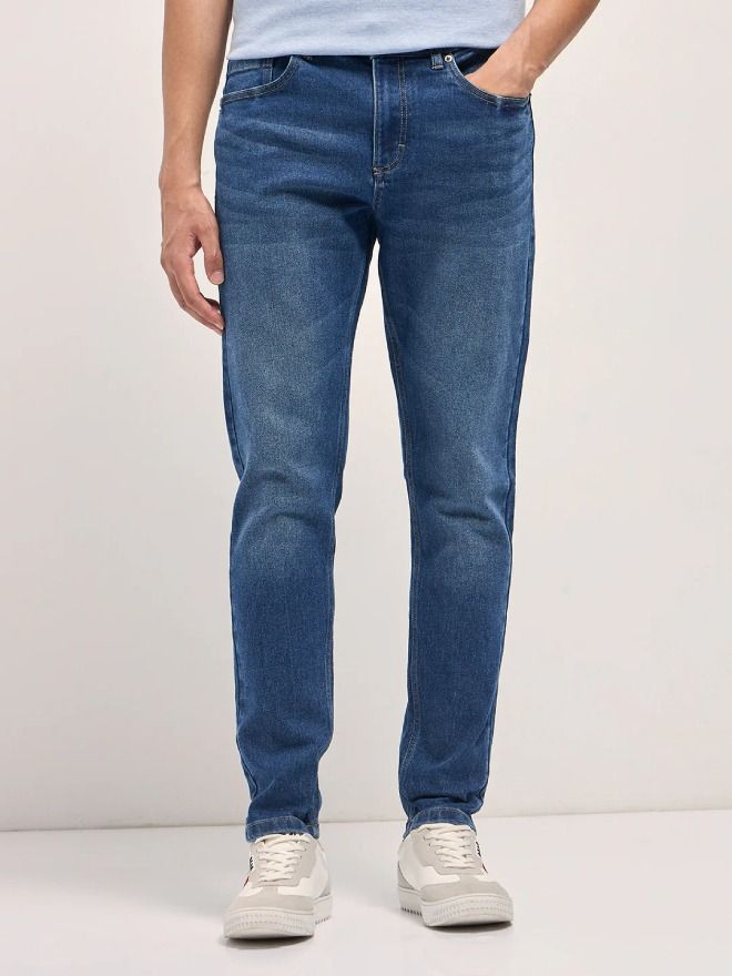 Add a modern touch to your denim collection with these Mid-Rise Slim Fit Jeans in Mid Blue with Light Fade Effect. The sleek, slim fit design offers a tailored, flattering look that contours to your legs while providing comfort and flexibility. The mid-blue wash, complemented by a subtle light fade effect, gives these jeans a relaxed, well-worn look, perfect for everyday wear. With a mid-rise waist, they offer a secure, comfortable fit that sits just right on the hips, making them ideal for a variety of casual outfits.