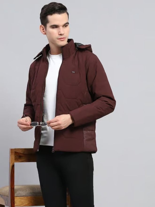 Confer a contemporary edge to your attire with this wine hooded regular fit hooded jacket from Monte Carlo. Tailored to sartorial perfection from premium quality fabric, it assures a soft and soothing touch against the skin. Exuding full sleeves, it is sure to fetch you compliments from all. The quilted pattern further speaks for itself.