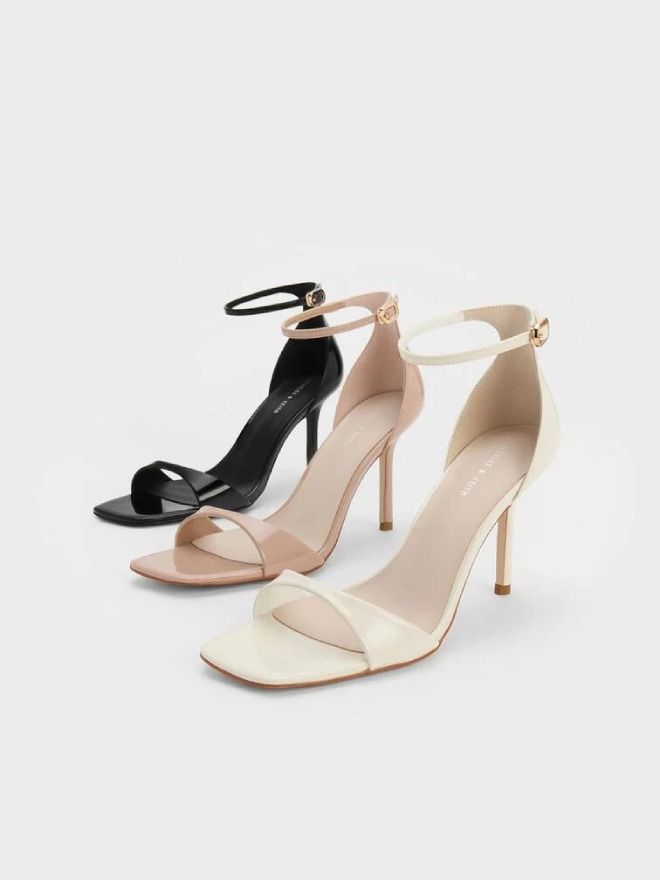 Step into refined elegance with these chalk white patent heeled sandals. Featuring a clean, minimalist design, this pair lets its glossy finish take center stage for a look that’s both modern and timeless. Set atop sleek 9cm stiletto heels, they instantly elevate any outfit—from office ensembles to evening wear. The adjustable ankle straps provide a secure and comfortable fit, making them a reliable choice for all-day style and confidence.