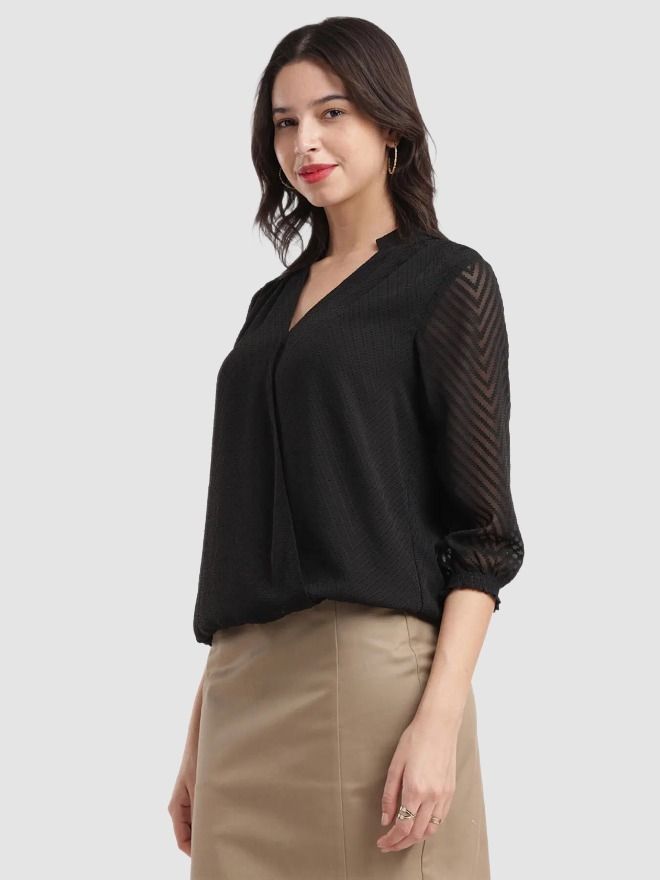 Ruffle Sleeves Top - Black