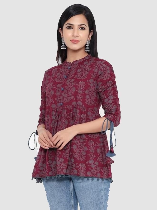 • Fabric: Rayon || Product Length : TOP 28 Inches|| In Box : 1 TOP; Style Pattern: Printed and Flared || Neckline : Mandarin Collar || Sleeves: 3/4 Sleeves.